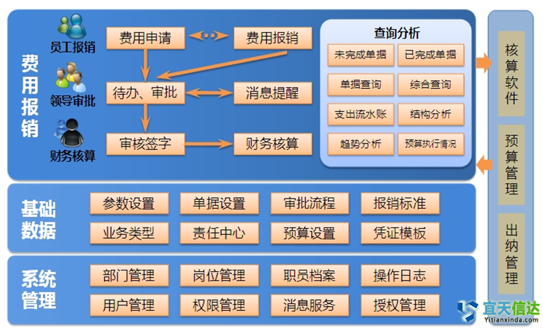 主要解決單體企業(yè)的費用報銷流程,不處理集團的跨賬套審批。