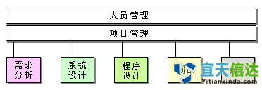軟件工程的主要環(huán)節(jié)包括人員管理、項目管理、需求分析、系統(tǒng)設(shè)計、程序設(shè)計、測試、維護等,如圖所示。軟件開發(fā)模型是對軟件過程的建模,即用一定的流程將各個環(huán)節(jié)連接起來,并可用規(guī)范的方式操作全過程,好比工廠的生產(chǎn)線。