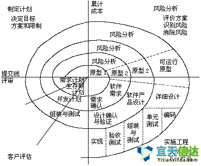 1988年,Barry Boehm正式發(fā)表了軟件系統(tǒng)開發(fā)的"螺旋模型",它將瀑布模型和快速原型模型結(jié)合起來,強調(diào)了其他模型所忽視的風險分析,特別適合于大型復(fù)雜的系統(tǒng)。